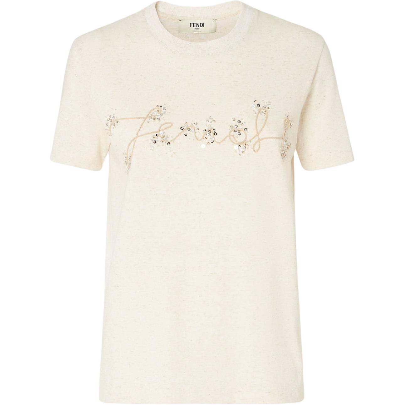 FENDI芬迪 纯色亚麻棉质 FW25 常规T恤 女款 米色
