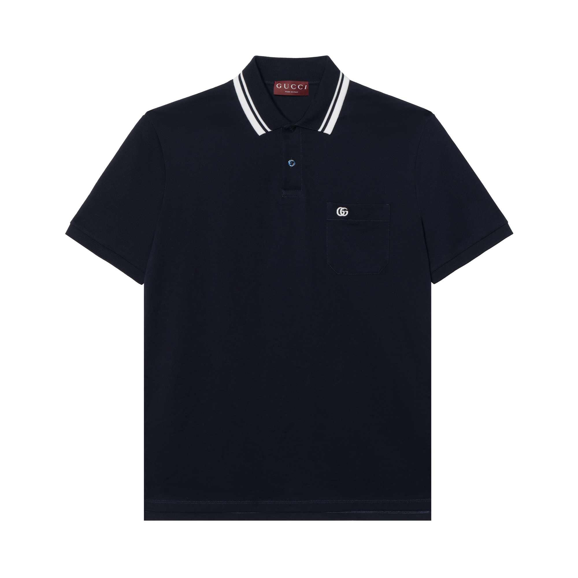 GUCCI古驰 刺绣落肩短袖Polo衫 男款 海军蓝