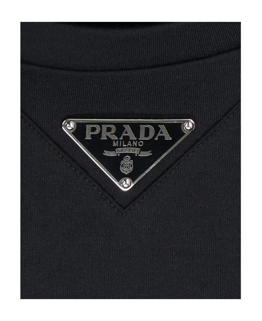 PRADA 纯色圆领合身套头直筒短袖T恤 男款 黑色