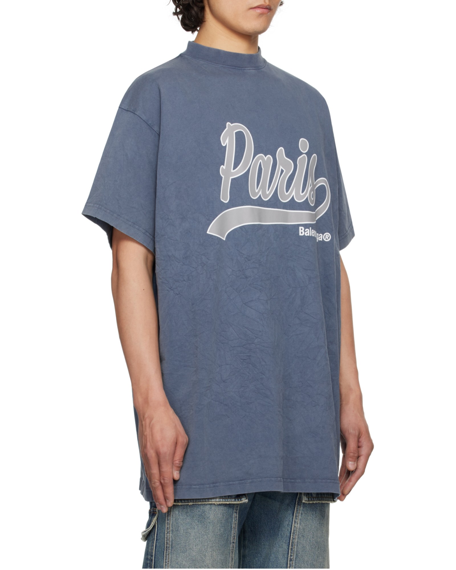 Balenciaga巴黎世家 FW24 字母印花圆领套头短袖T恤 宽松版型 男女同款 褪色蓝色