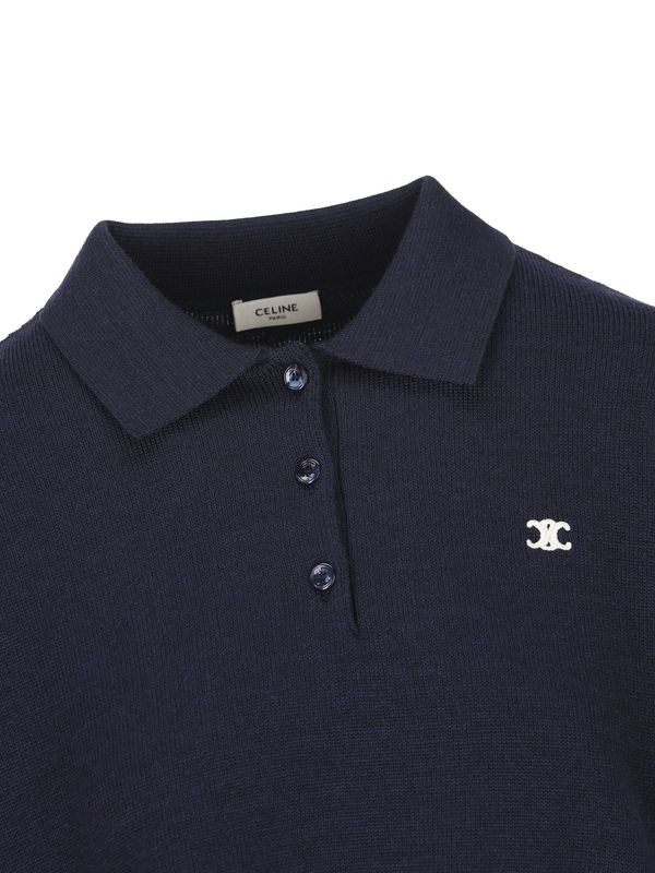 CELINE赛琳 SS25 短款宽松版型刺绣Polo衫 女款 海军蓝