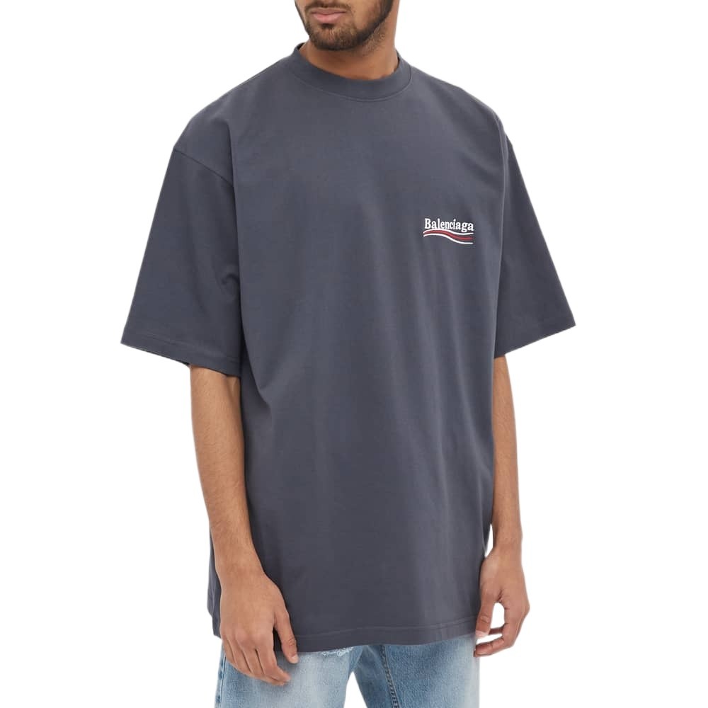 Balenciaga巴黎世家 SS22 纯色字母刺绣圆领短袖T恤 男款 深灰色