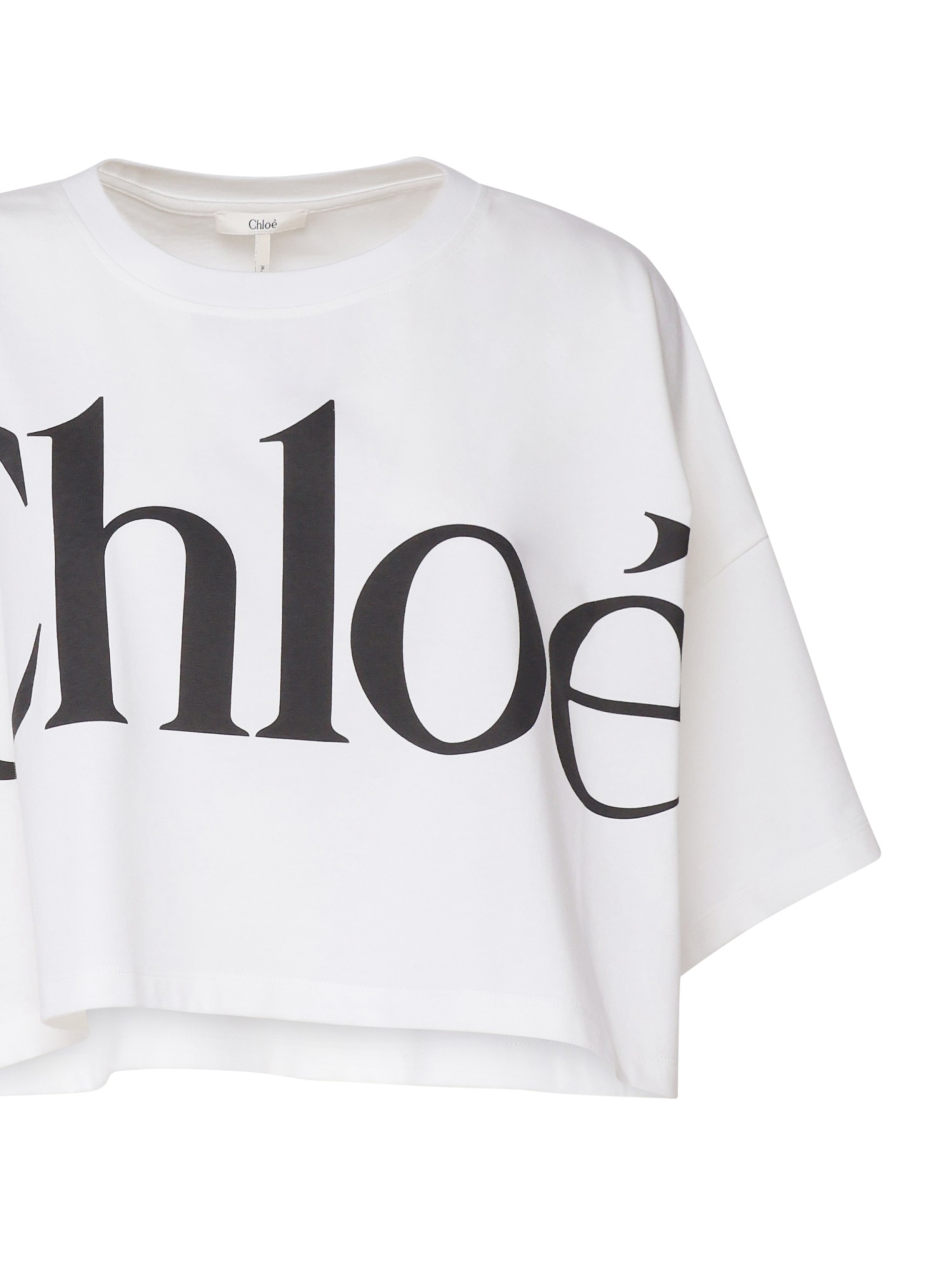 Chloe蔻依 字母Logo印花圆领短款落肩短袖 T恤 女款 白色