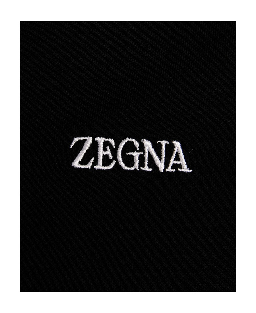 Zegna Logo刺绣条纹边饰短袖Polo衫 男款 黑色