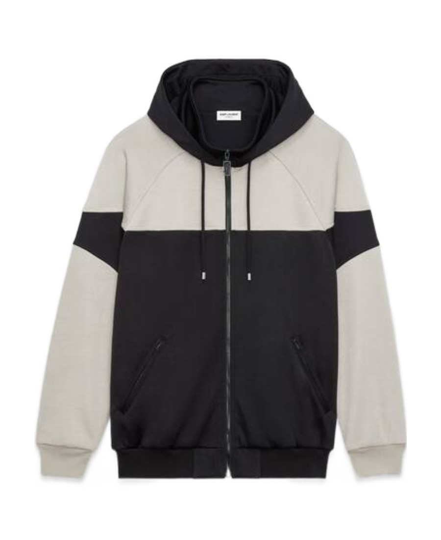 SAINT LAURENT圣罗兰 SS23 拼色连帽拉链长袖卫衣 男款 珍珠黑