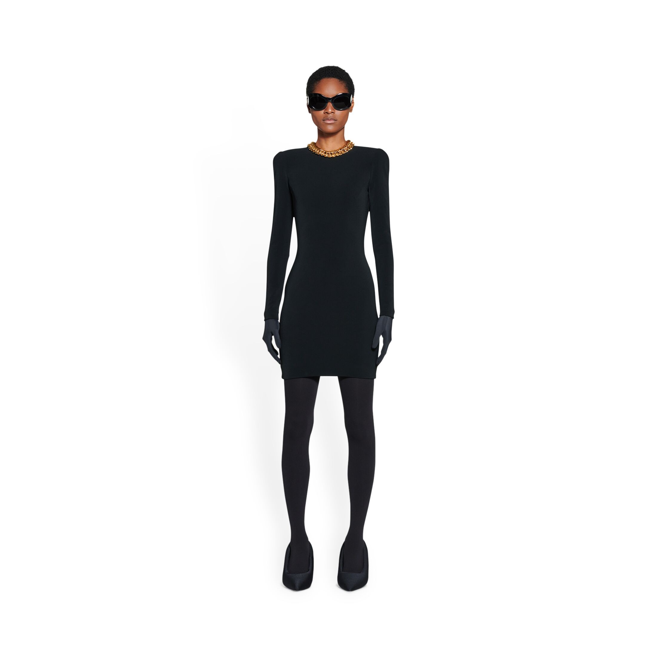 Balenciaga巴黎世家 Garde-robe 系列 SS23 修身版型 纯色弹力长袖连衣裙 女款 黑色