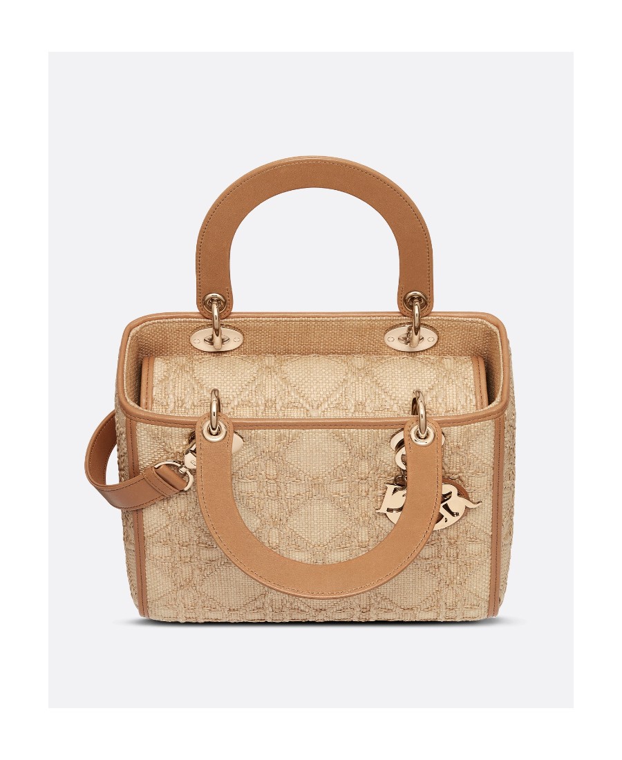 Dior Lady Dior 戴妃包系列 酒椰草藤格纹手提包单肩包 中号 女款 金色/黄褐色