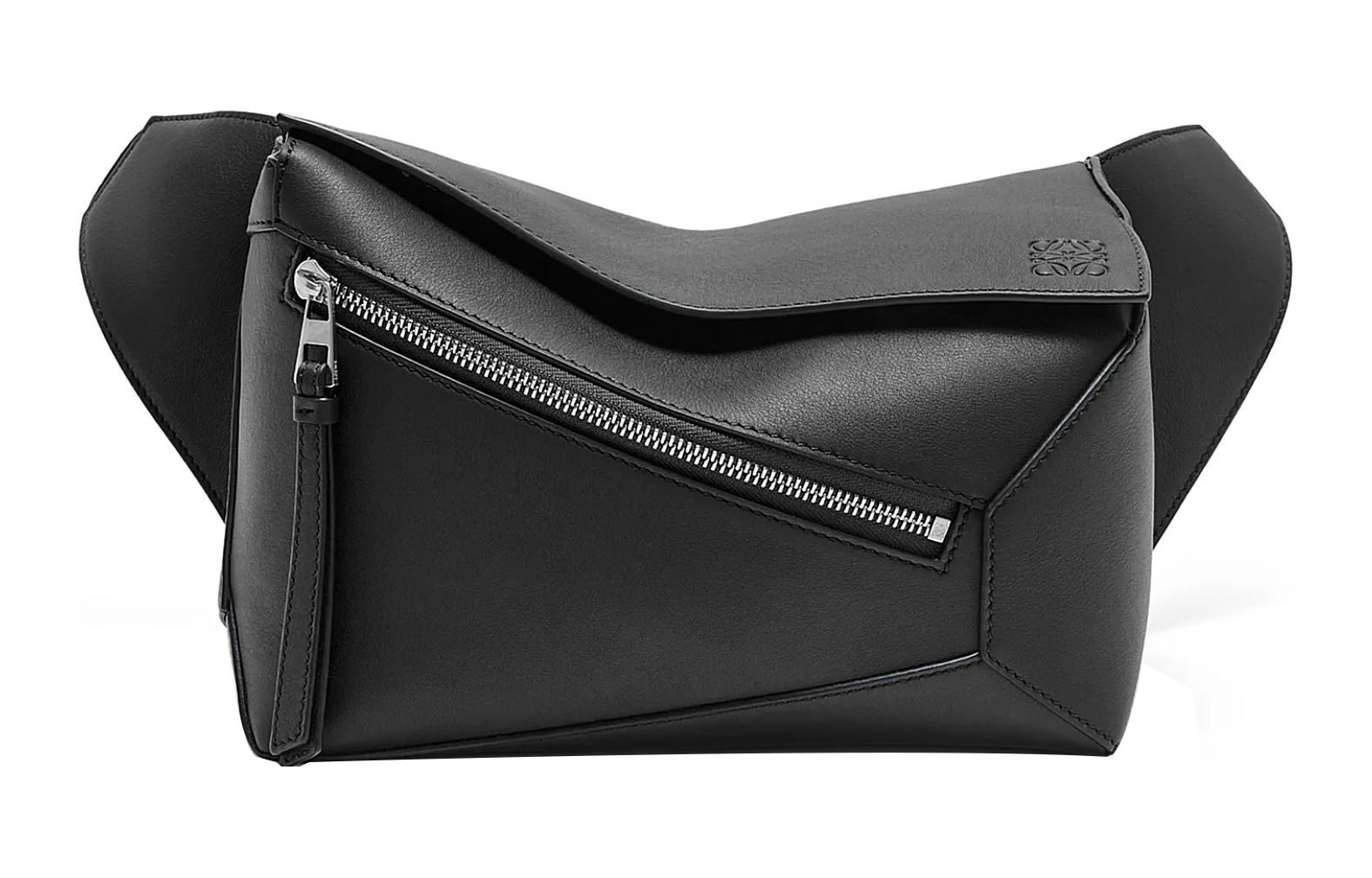 LOEWE羅意威 Puzzle 可調節肩帶拉鍊開合 牛皮革 腰包 小號 女款 黑色