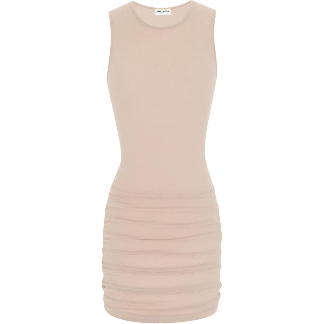 SAINT LAURENT圣罗兰 SS24 纯色圆领半透明修身无袖连衣裙 女款 黑色