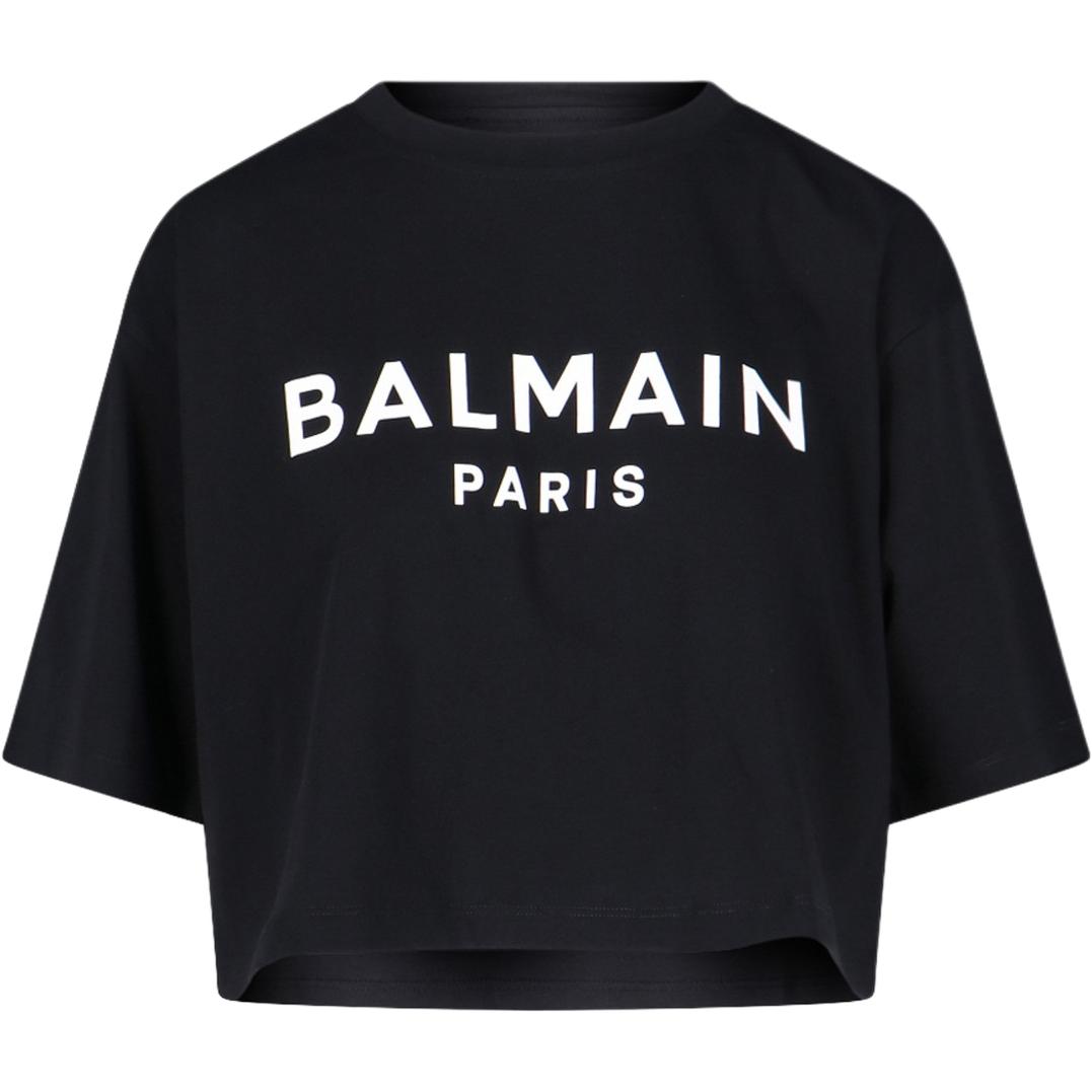 BALMAIN巴尔曼 徽标套头圆领短袖短款 T恤 女款 黑色