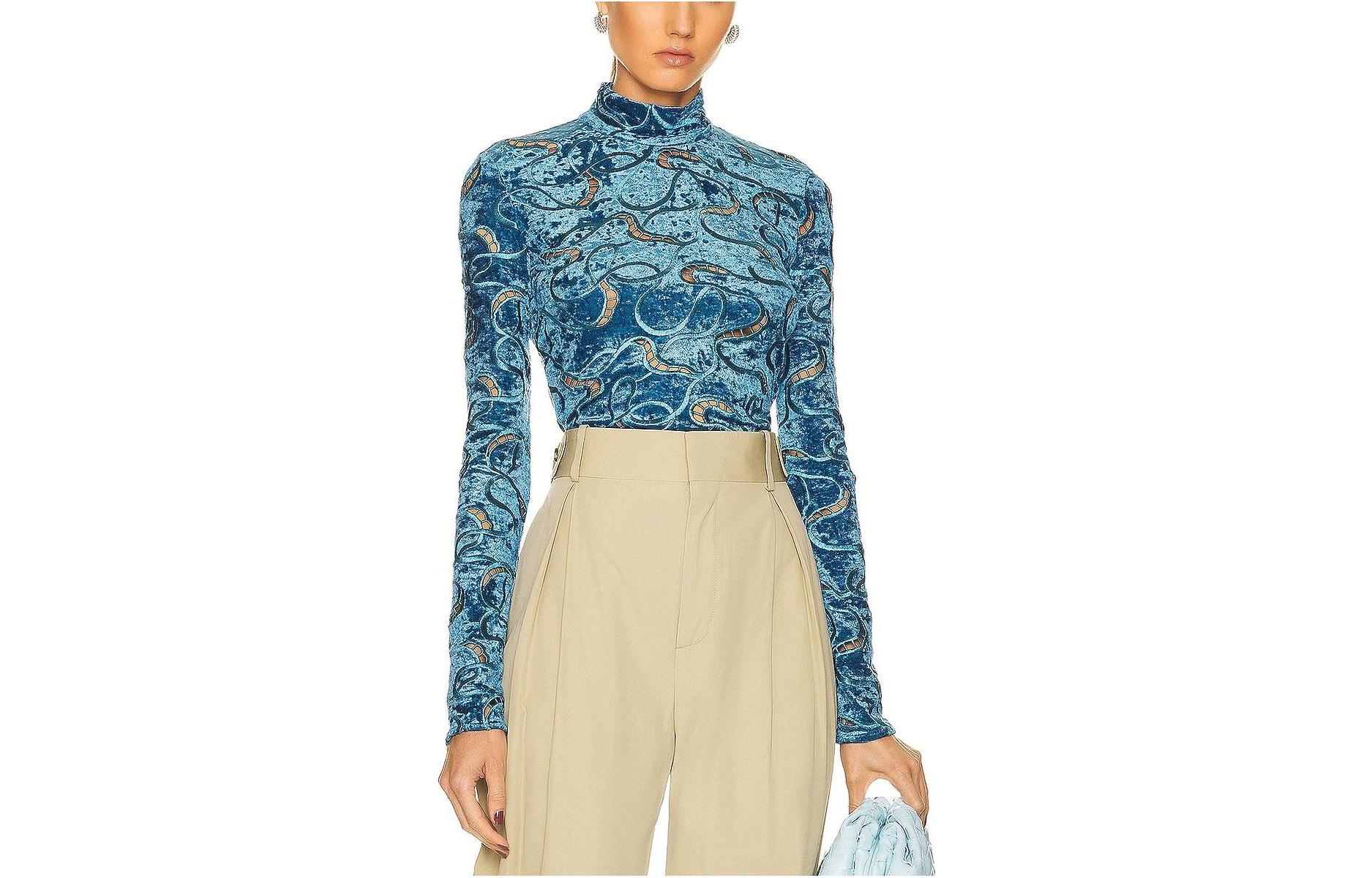 Stella McCartney 图案满印半高领套头修身长袖毛衣 女款 蓝色