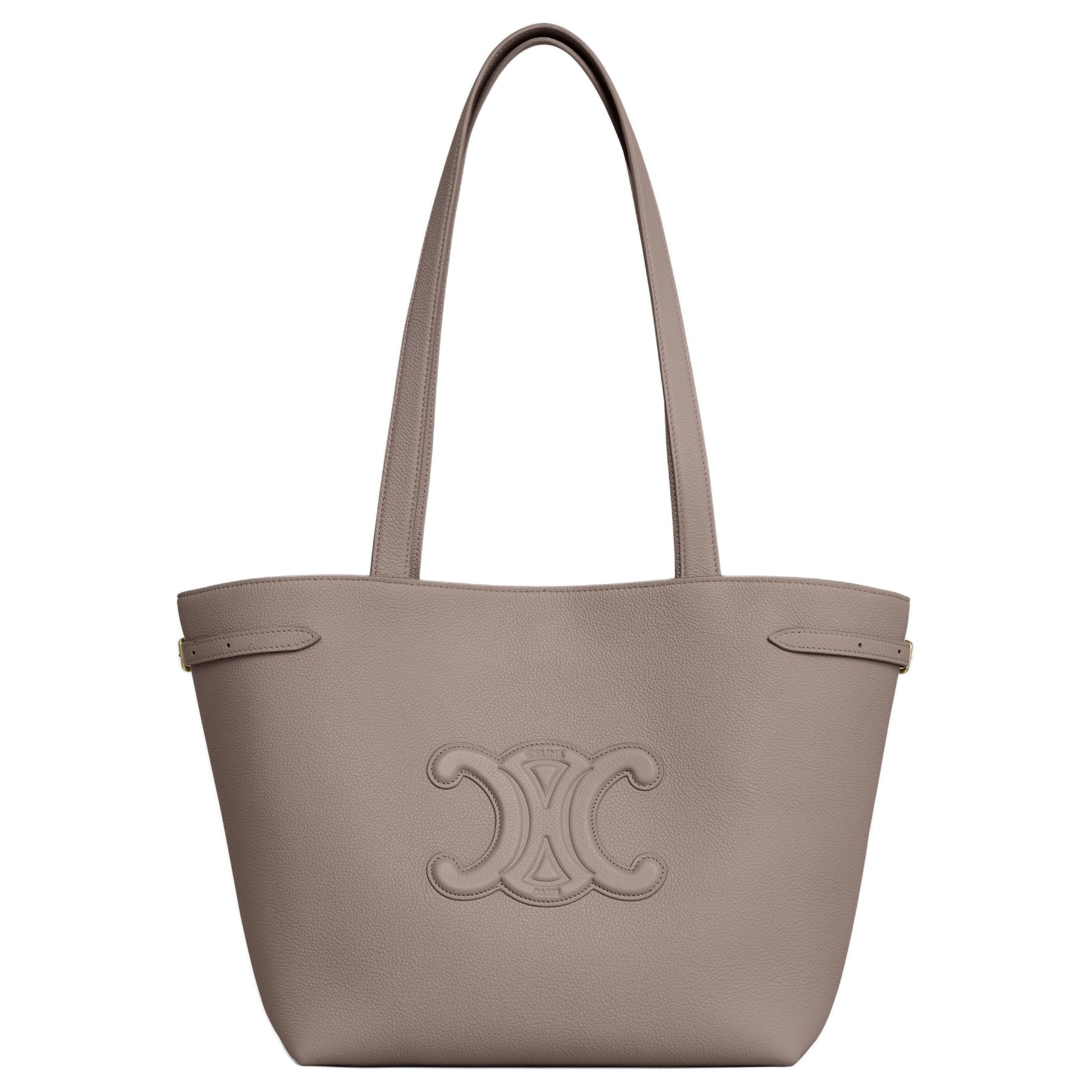 CELINE赛琳 Cuir Triomphe Logo徽标按扣开合托特包Tote包购物袋手提包 粒面小牛皮 单肩包 小号 女款 卵石色