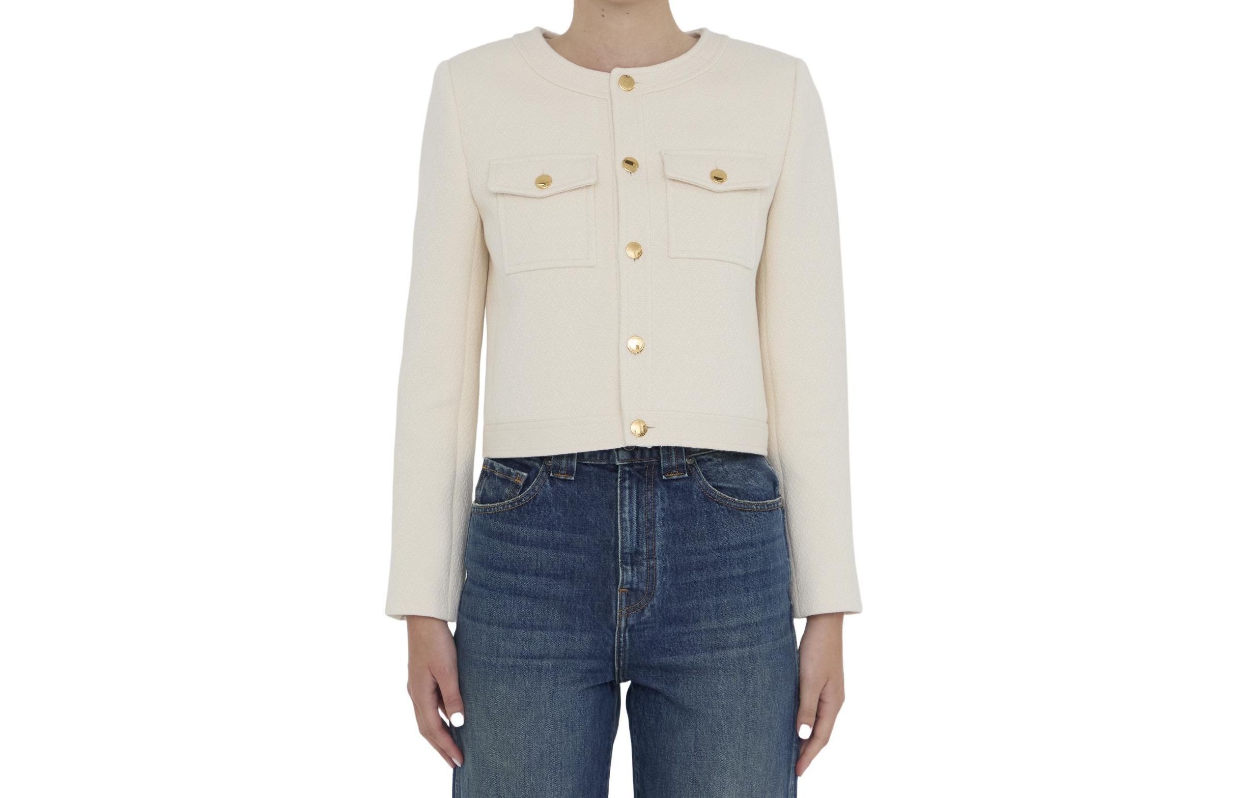 CELINE赛琳 SS24 纯色短款圆领单排扣长袖夹克外套 女款 白色