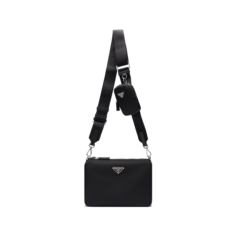 Re-Nylon再生尼龙和Saffiano皮革徽标单肩包
