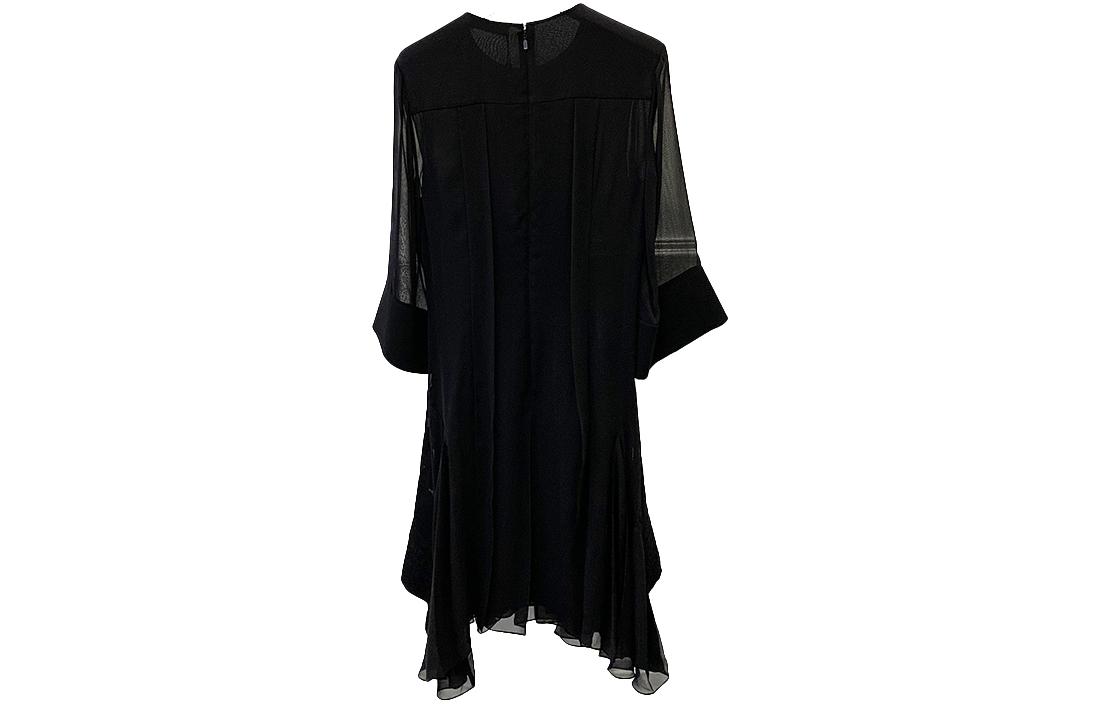 Chloe/蔻依 SS23 纯色层叠不规则则下摆圆领长袖连衣裙 黑色
