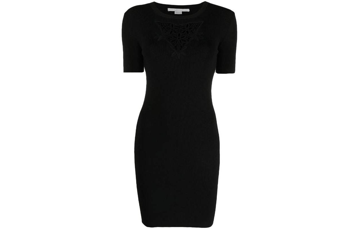 Stella McCartney 纯色圆领套头短袖连衣裙 女款 黑色