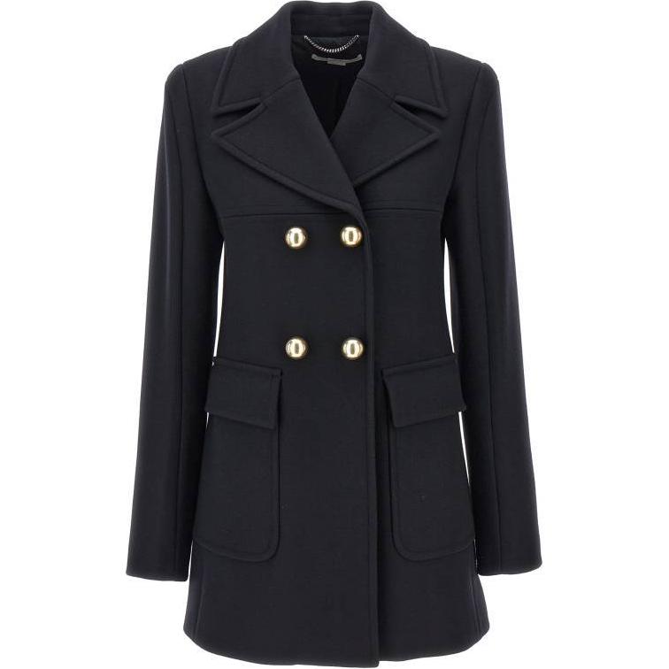 Stella McCartney 纯色双排扣中长款翻领长袖夹克外套 女款 黑色
