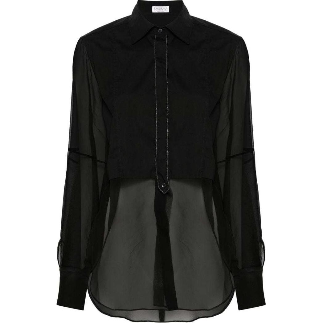 Brunello Cucinelli SS24 纯色翻领宽松单排扣长袖衬衫 女款 黑色