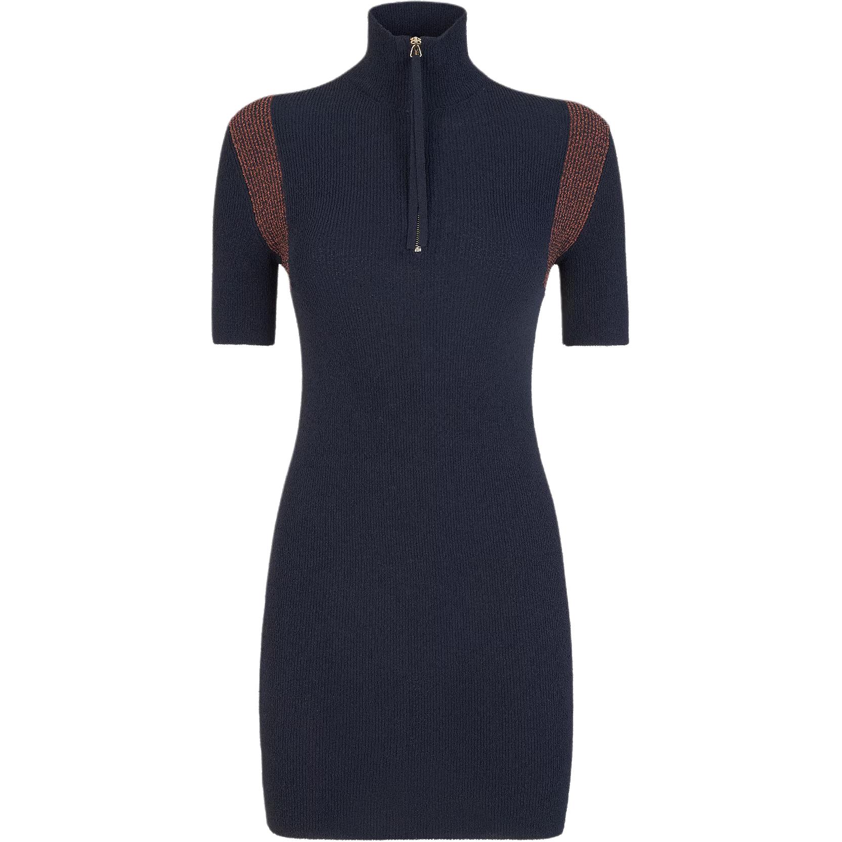 FENDI芬迪 SS24 撞色嵌花图案修身短款短袖连衣裙 女款 蓝色