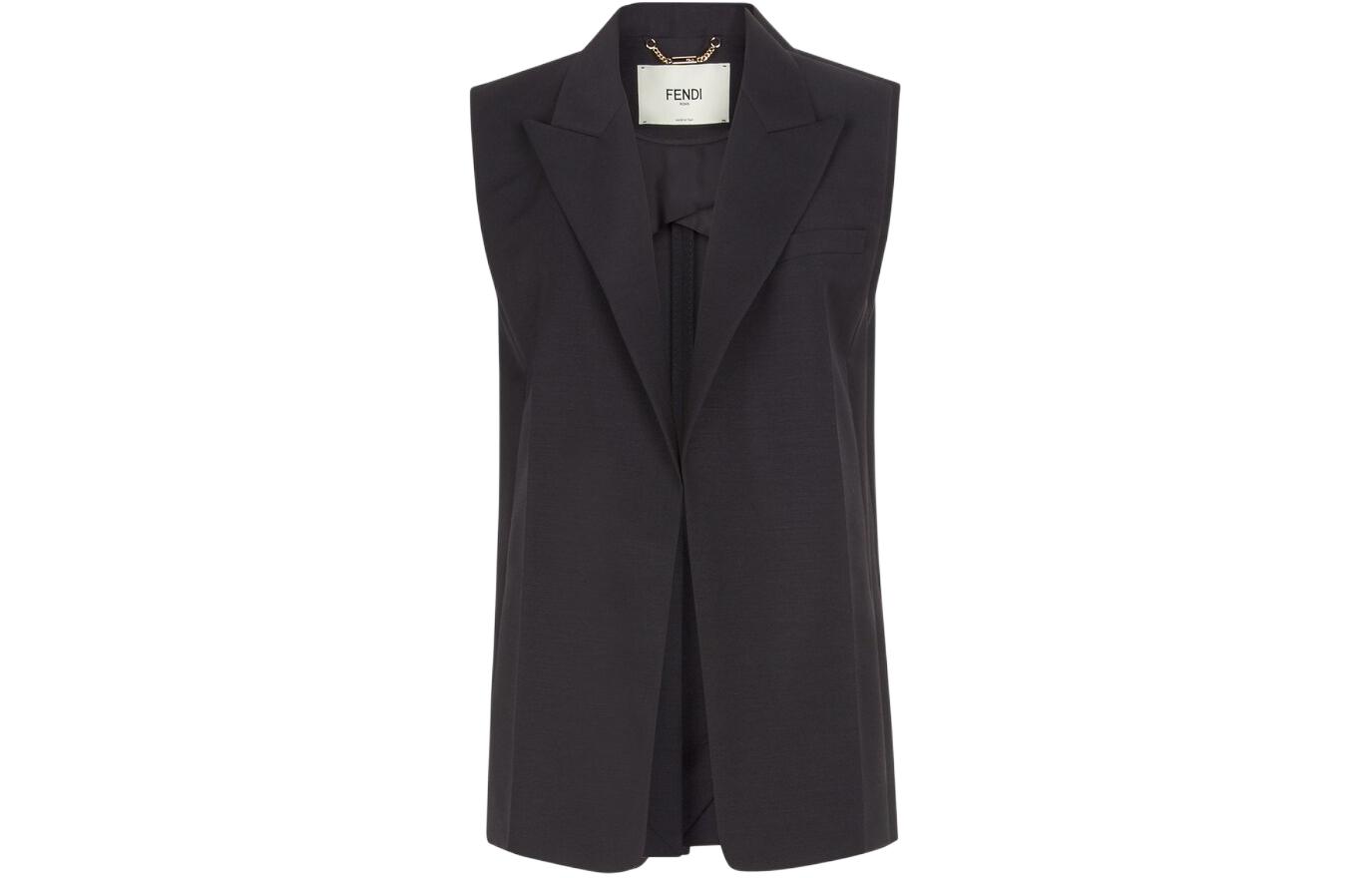FENDI芬迪 纯色开衫直筒休闲马甲 女款 黑色