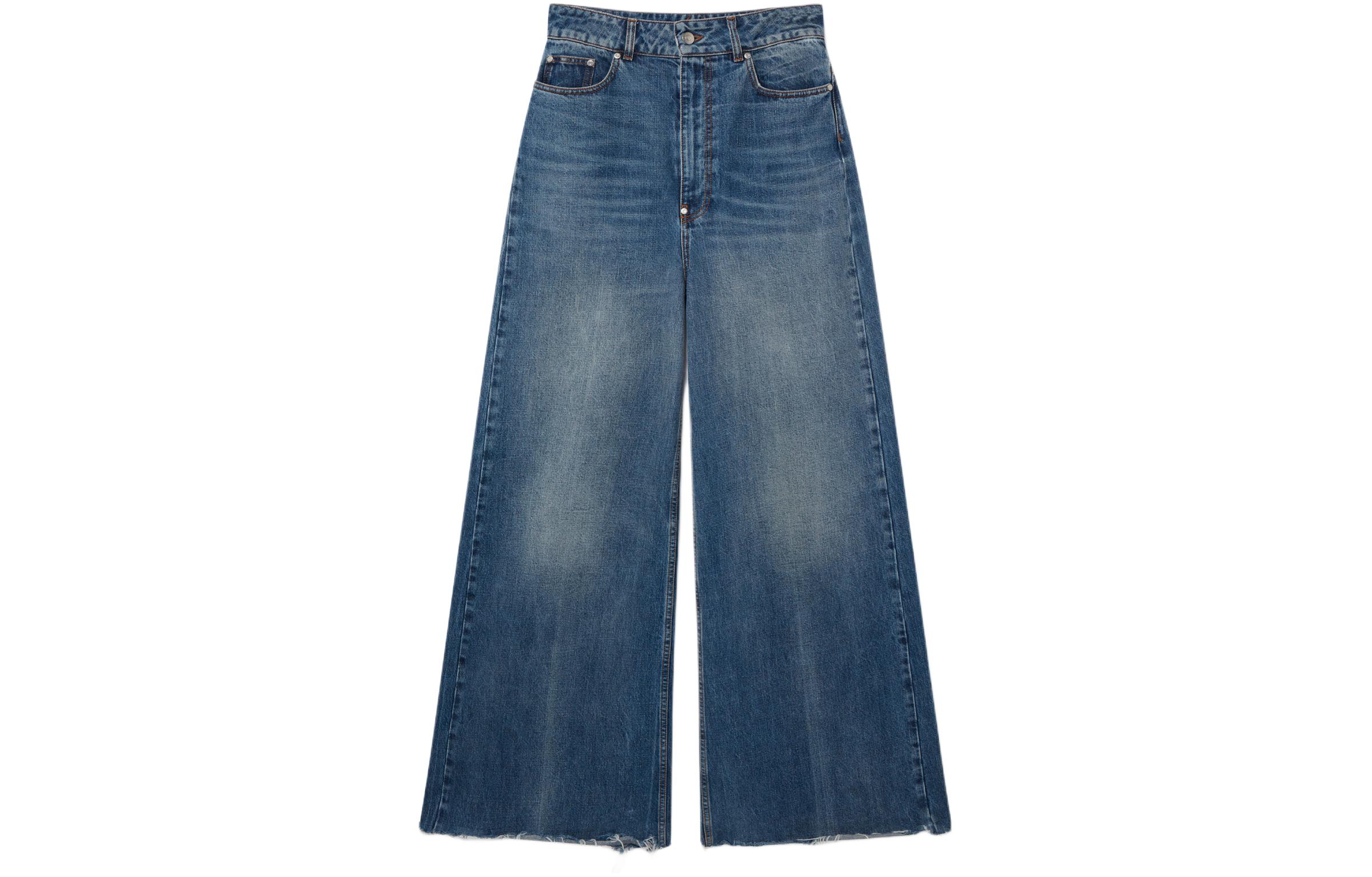 Stella McCartney SS24 Slouchy Flared High-Rise Denim Jeans 纯色水洗做旧宽松高腰磨边下摆阔腿牛仔裤 女款 蓝色