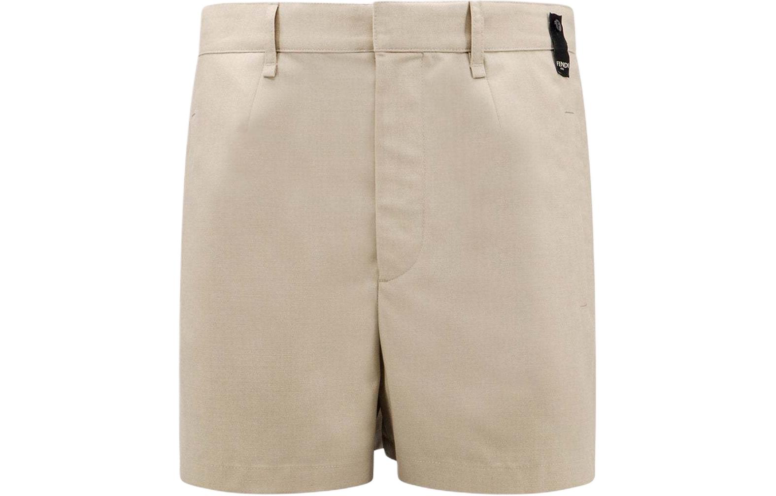 FENDI芬迪 纯色拉链门襟宽松直筒休闲短裤 男款 卡其色