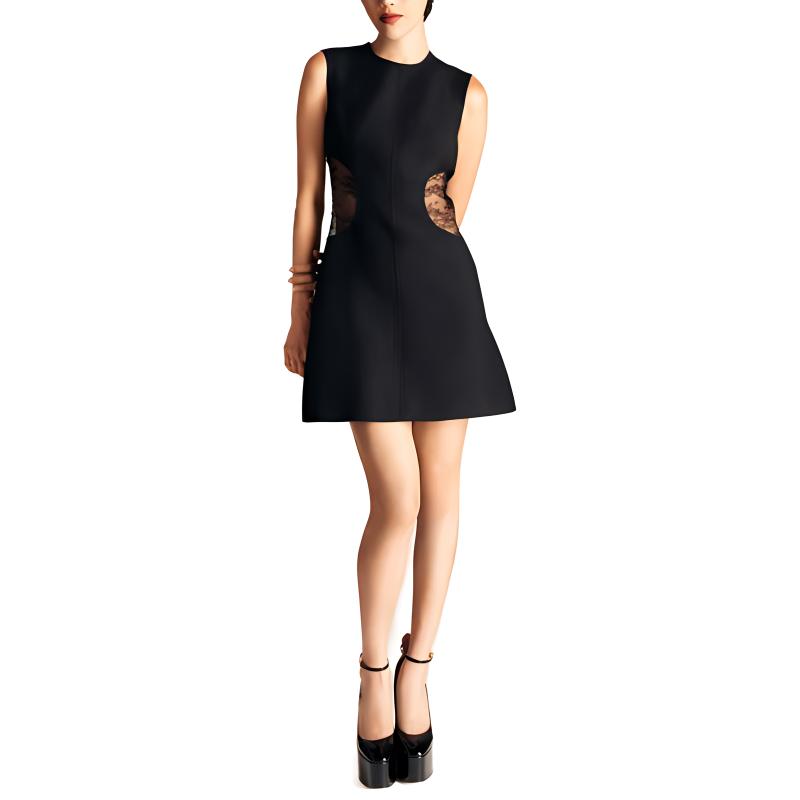 Valentino华伦天奴 纯色侧边镂空效果修身圆领短款无袖连衣裙 女款 黑色