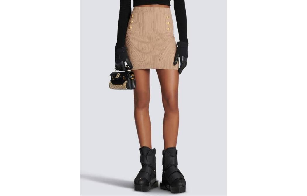 BALMAIN巴尔曼 FW22 纽扣缀饰针织牛仔短裙 女款