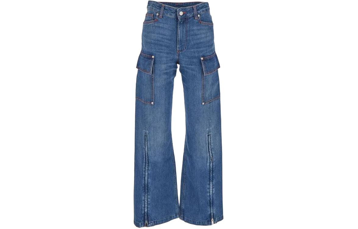Stella McCartney 纯色宽松阔腿牛仔裤 女款 蓝色