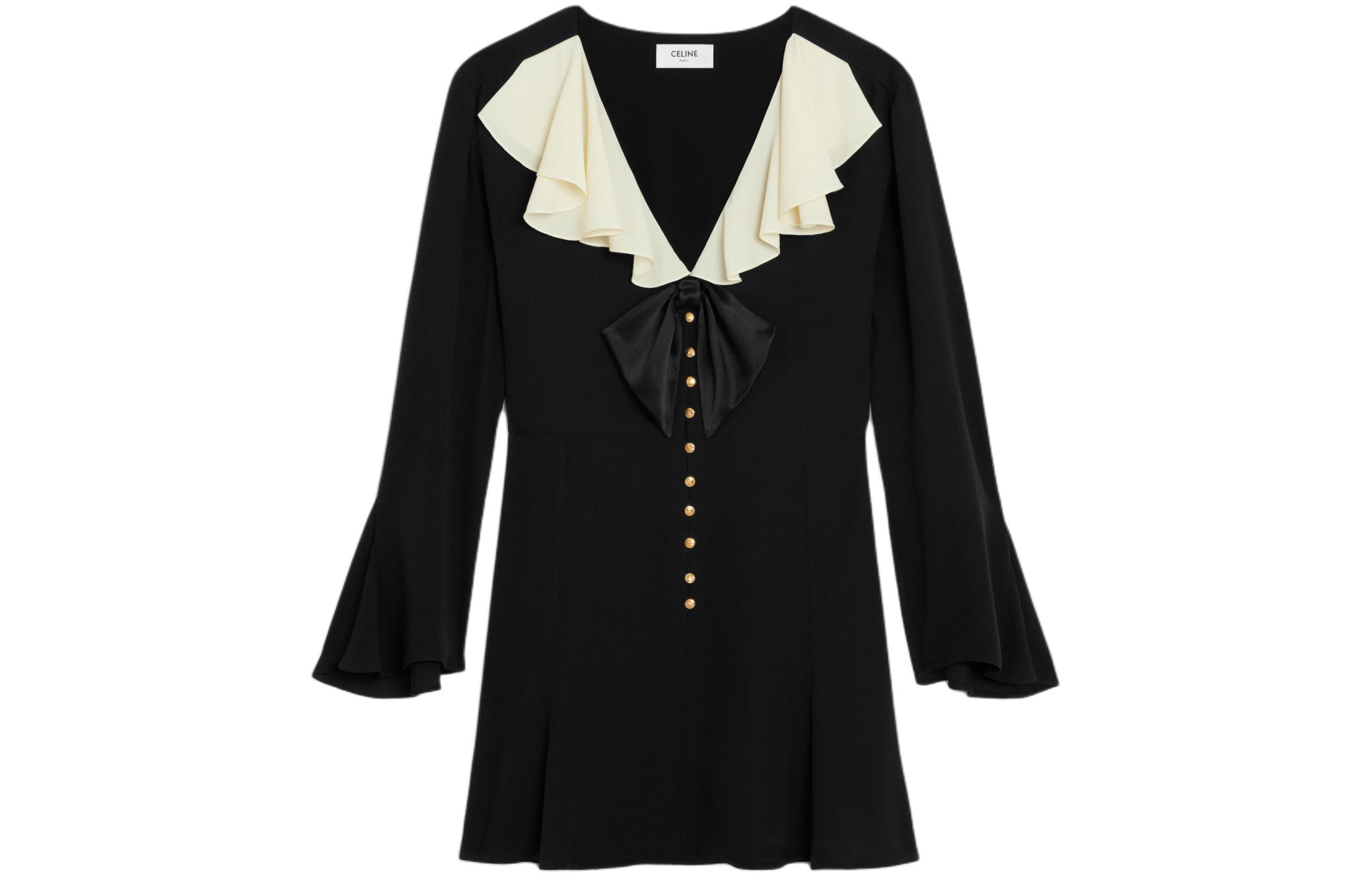 CELINE赛琳 胸饰花边休闲长袖连衣裙 女款 黑色