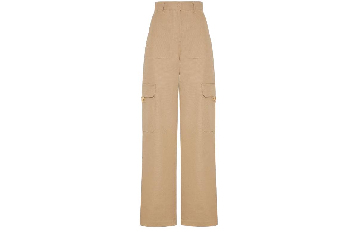 Valentino华伦天奴 纯色拉链直筒休闲裤 女款 卡其色