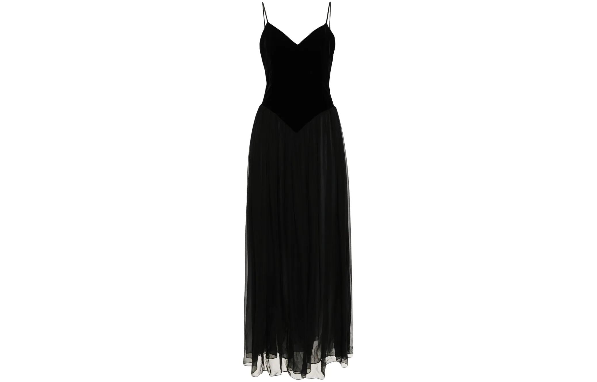 Chloe蔻依 纯色修身V领中长款无袖吊带连衣裙 女款 黑色