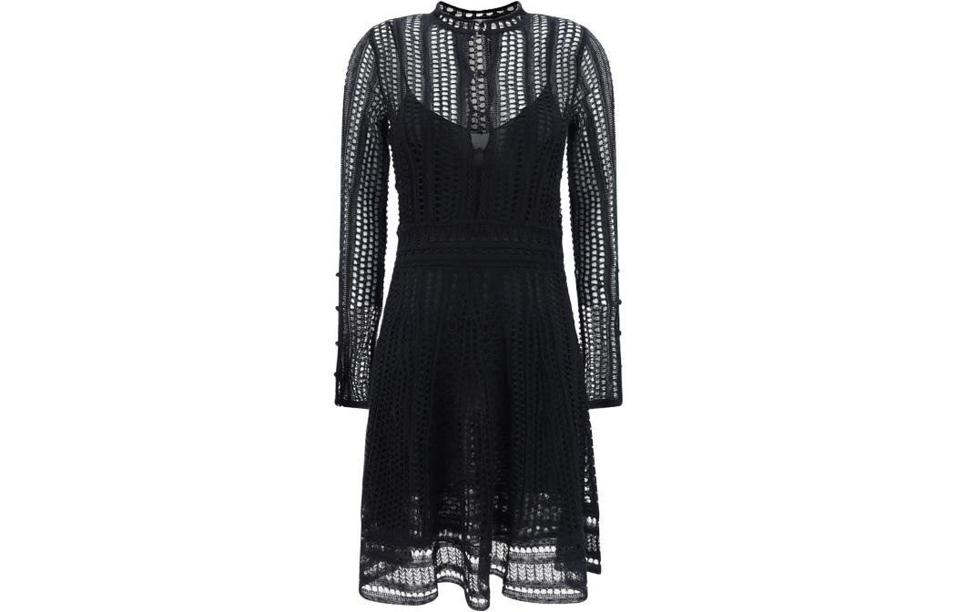 Chloe蔻依 半透明镂空中长款长袖连衣裙 女款 黑色