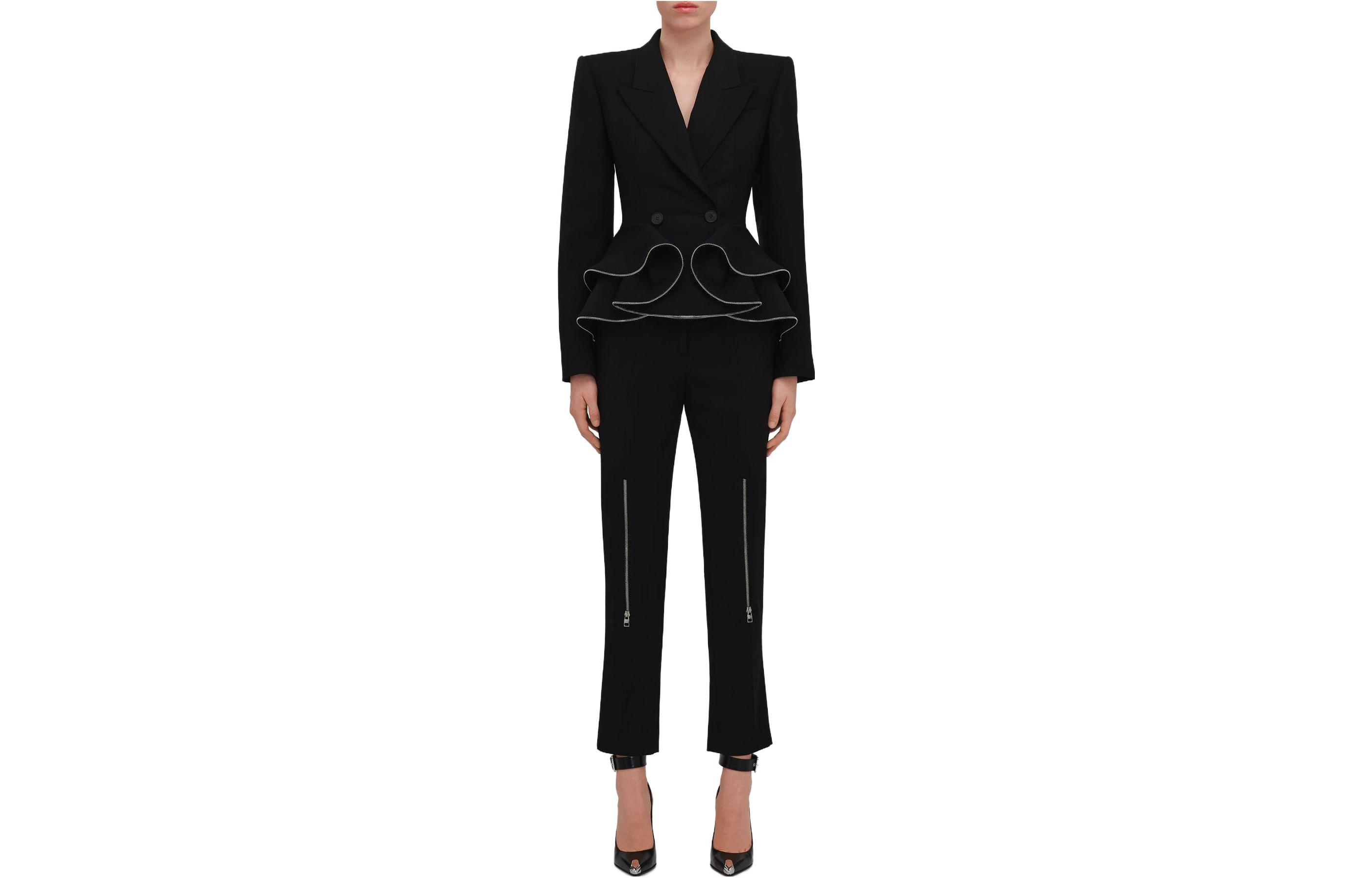 荷叶边拉链双排扣西装外套