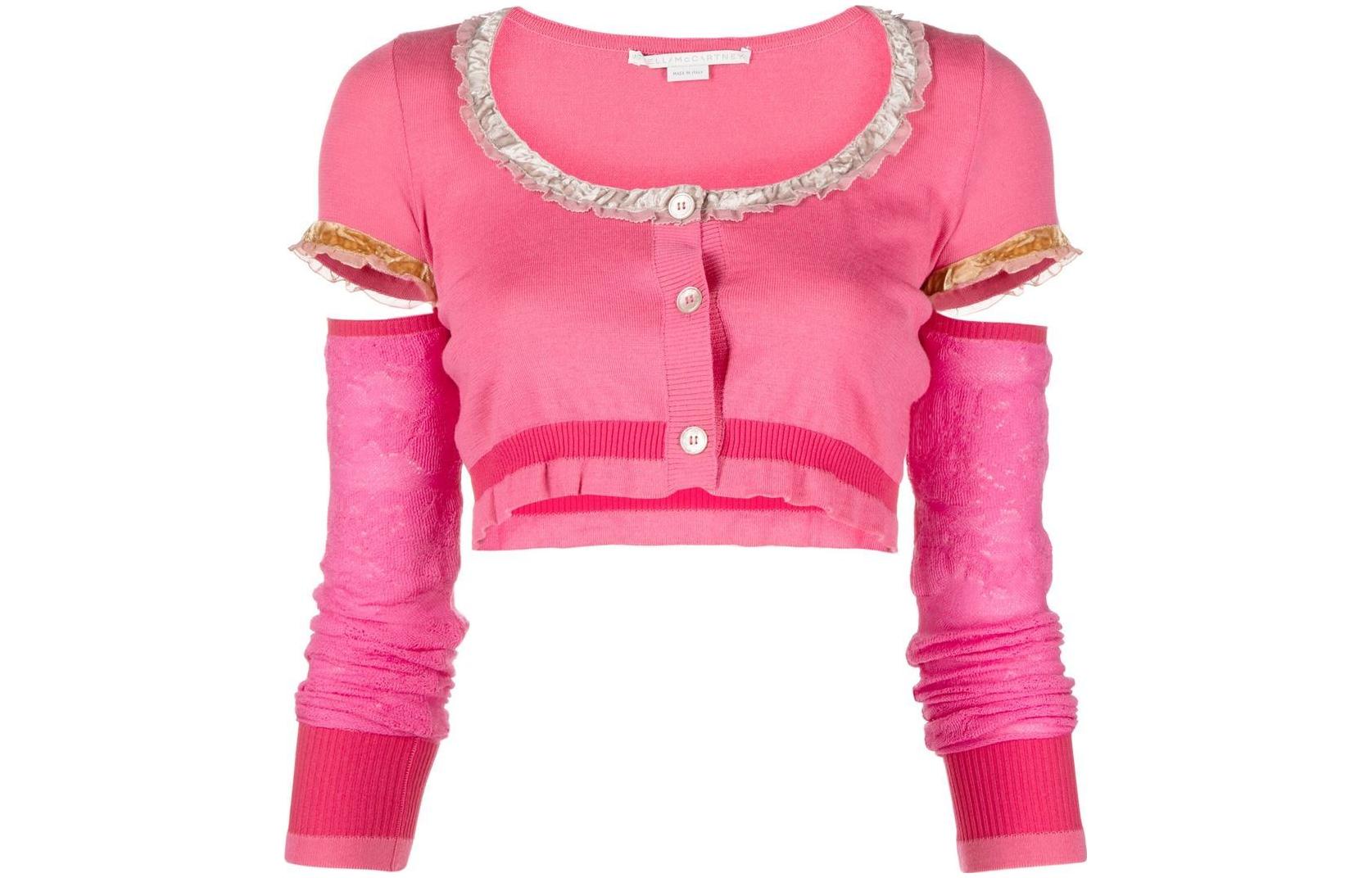 Stella McCartney FW22 挖剪细节荷叶边饰短款截短上衣 女款 粉色