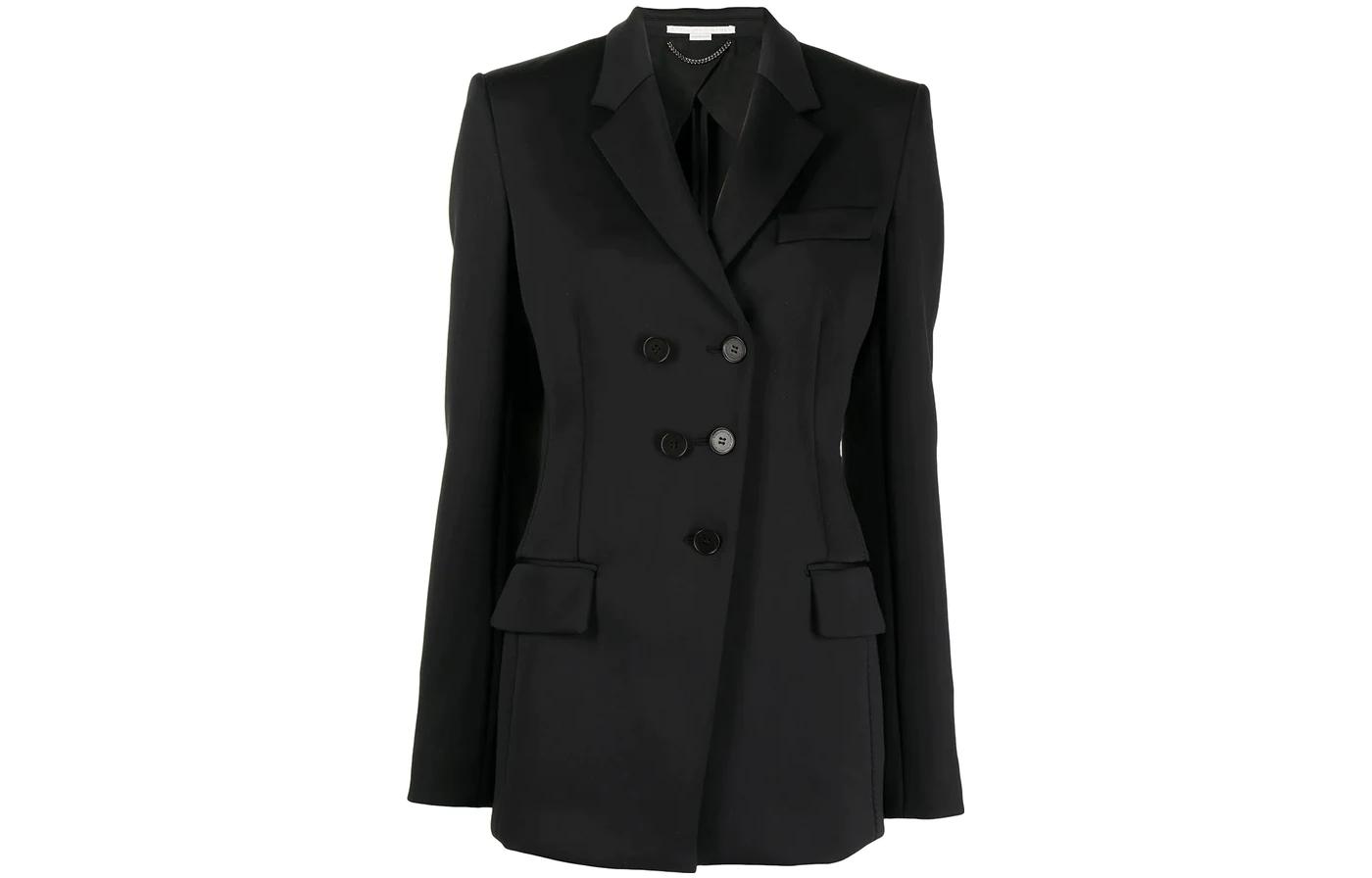 Stella McCartney 纯色西装领双排扣长袖西装外套 女款 黑色