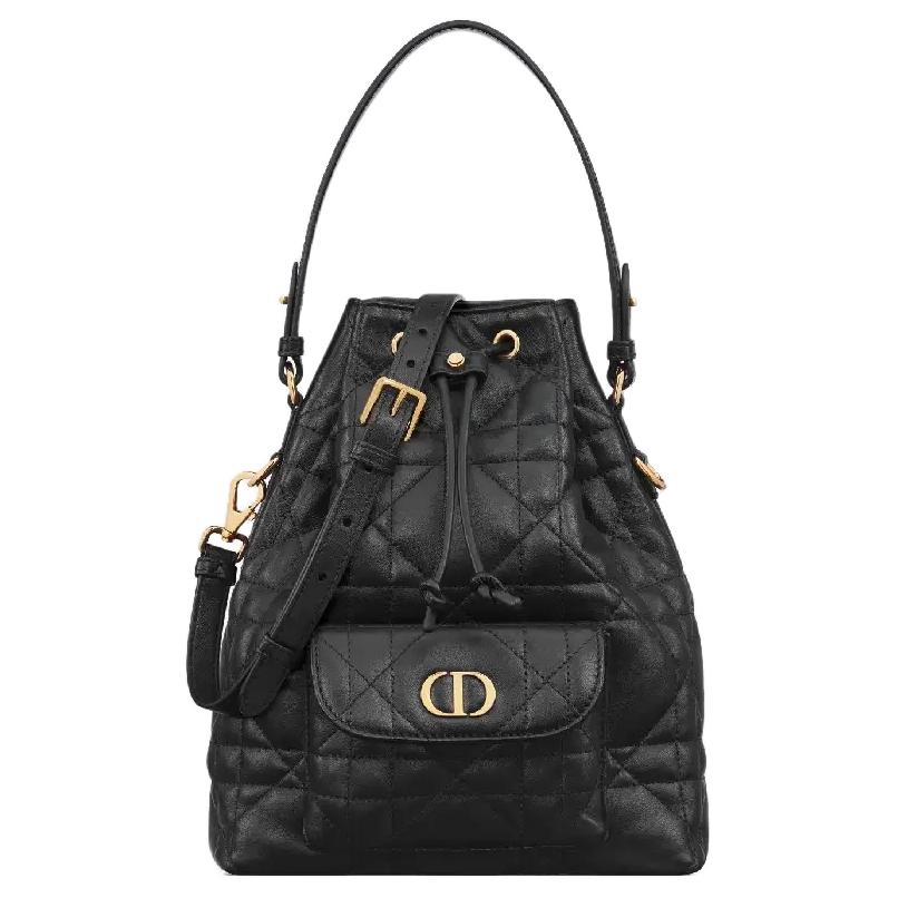 DIOR迪奥 Caro 金色饰面金属CD标志 羊皮革 水桶包单肩手提包 小号 女款 奶白色