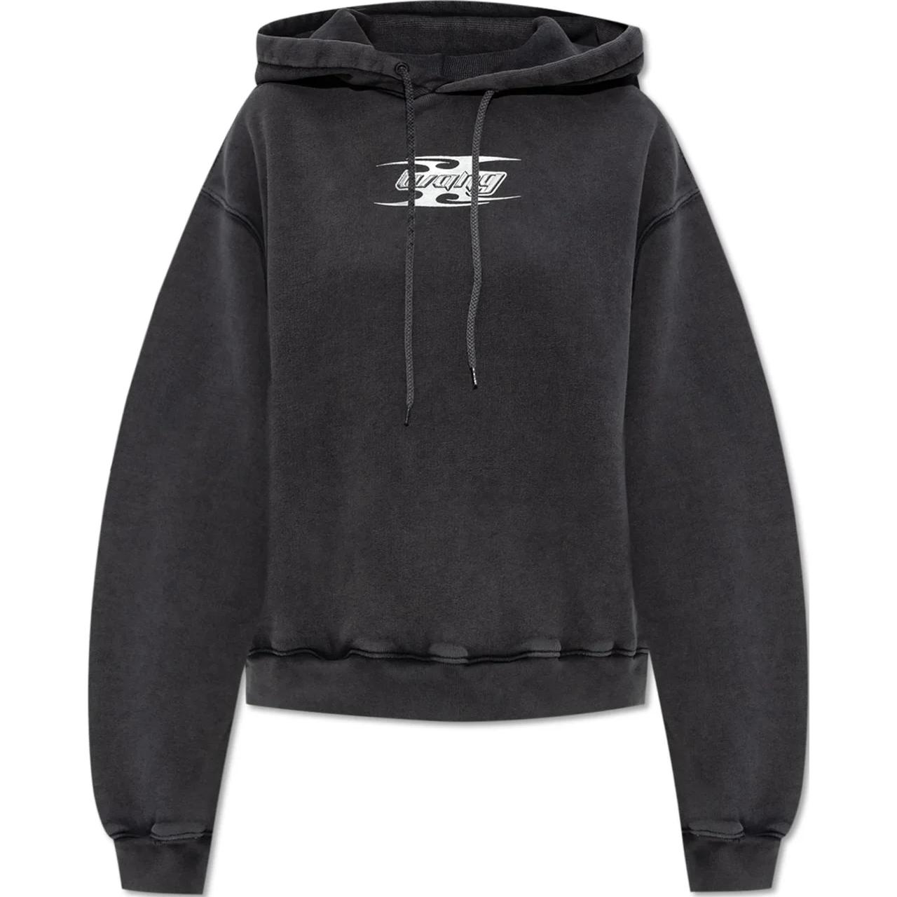 alexander wang亚历山大王 字母徽标连帽套头落肩长袖卫衣 女款 灰色