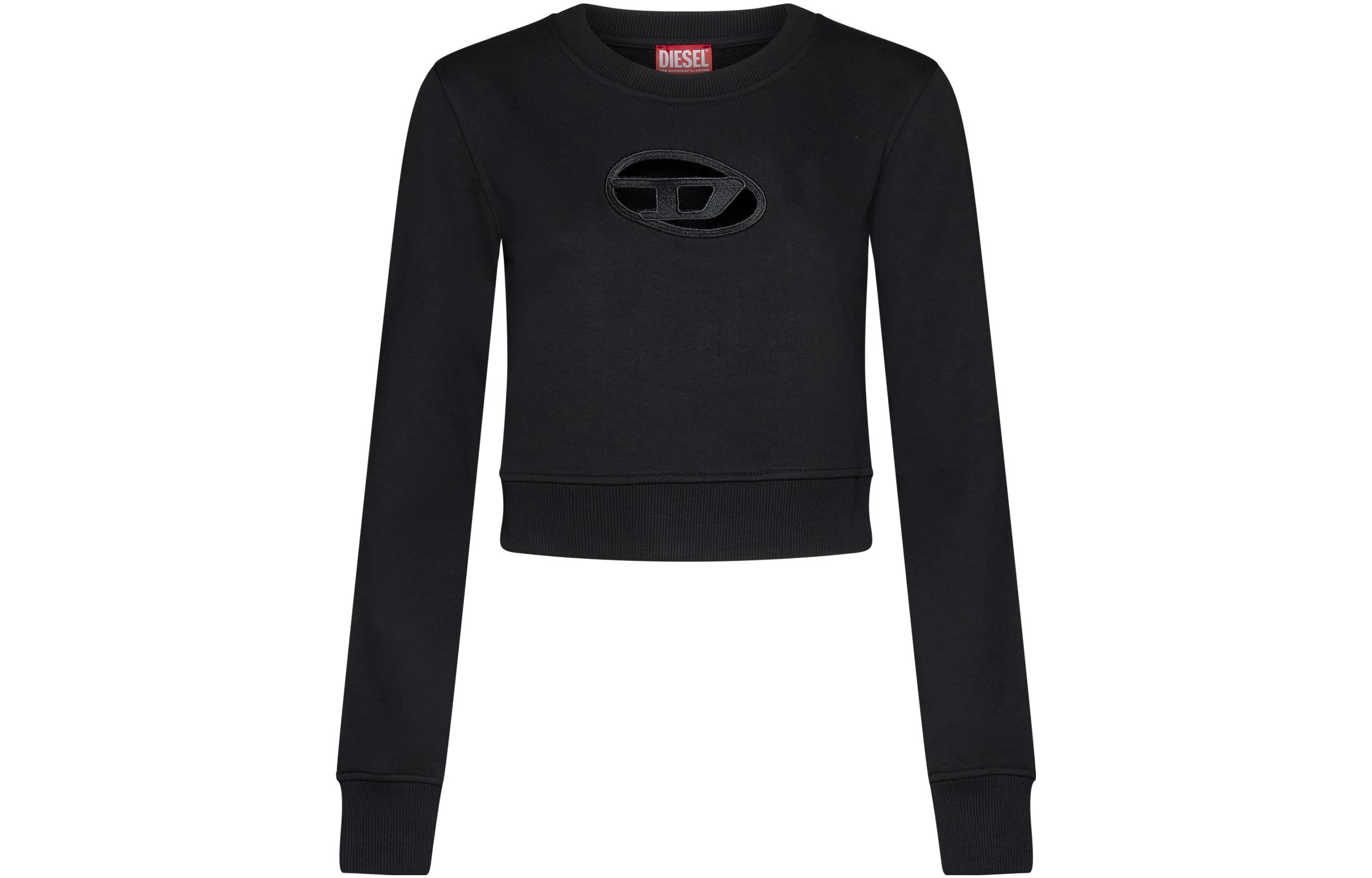 DIESEL OVAL-D系列logo镂空圆领短款套头卫衣 女款 白色