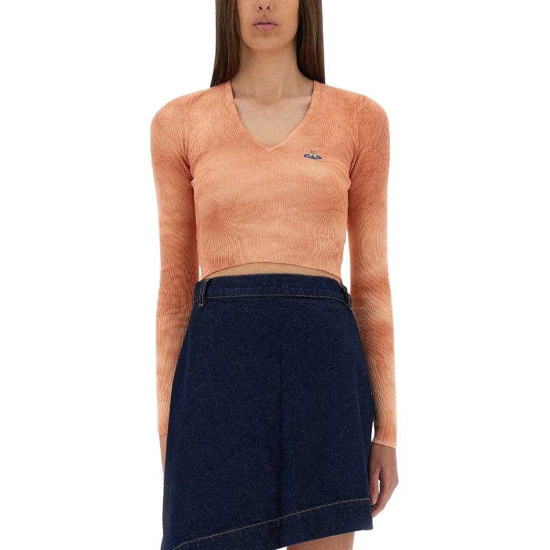 Vivienne Westwood Logo徽标V领短款长袖针织衫 女款 开心果色
