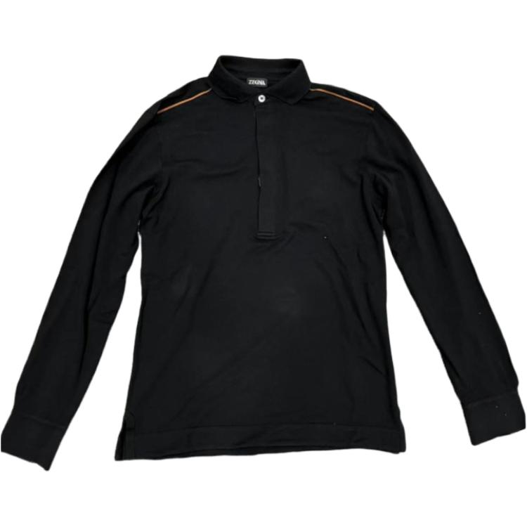 Zegna 条纹套头长袖Polo衫 男款 蓝色